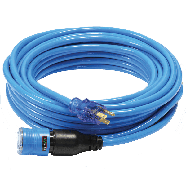 - Heavy duty molded on 15A 125V plugs and connectors.