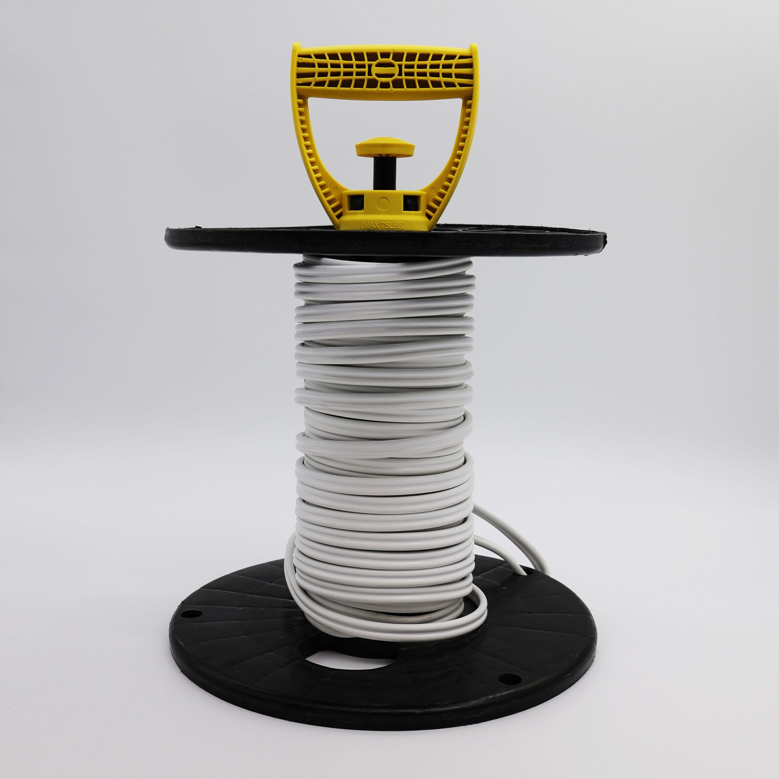 This wire spool handle is perfect for situations where you can’t roll your spools along the ground. Adding an ergonomic handle is the ideal way for transporting wire spools up or down stairs or through uneven terrain. From spool transportation to being used as a cable reel dispenser, ER-GO 50 is a must-have tool for electricians.