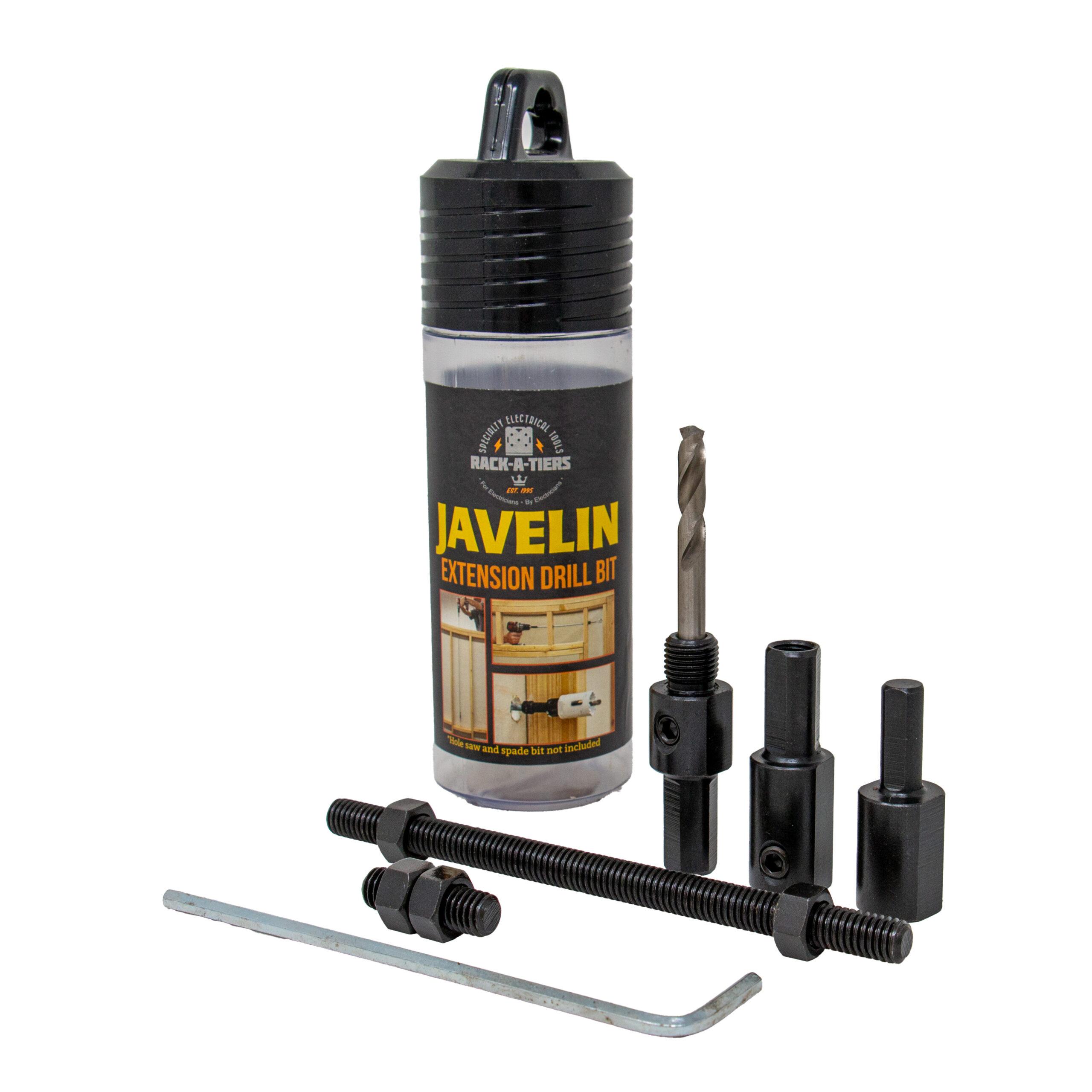 The Javelin includes the attachments needed to convert a threaded rod to an extension drill bit. Drill at multiple lengths depending on how long you cut your threaded rod.